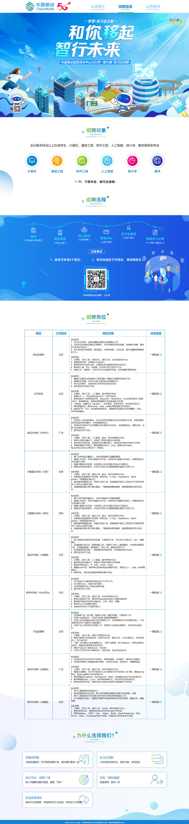 中国移动信息中心2022年“智行者”实习生招聘