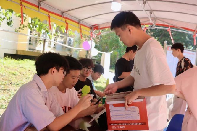 院情介绍、考研升学、就业去向等等情况介绍展示在报到点,让新生一进校园就感到满满的自豪与自信。报到点布置各种“网红”打卡标识,朋友圈牌、鲜花、小码人形立牌等,让新生同学感受到bevictor伟德的青春与活力。江农小码人偶与新生温情互动,一起记录开学美好瞬间。