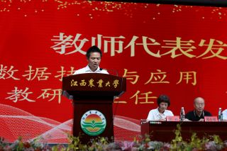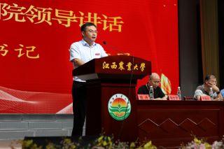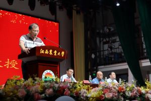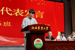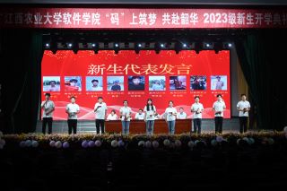 教师代表杨红云教授,老生代表、“江西省最美老员工”刘磊锟和新生代表先后作了发言,院领导为2023级新生代表佩戴校徽。