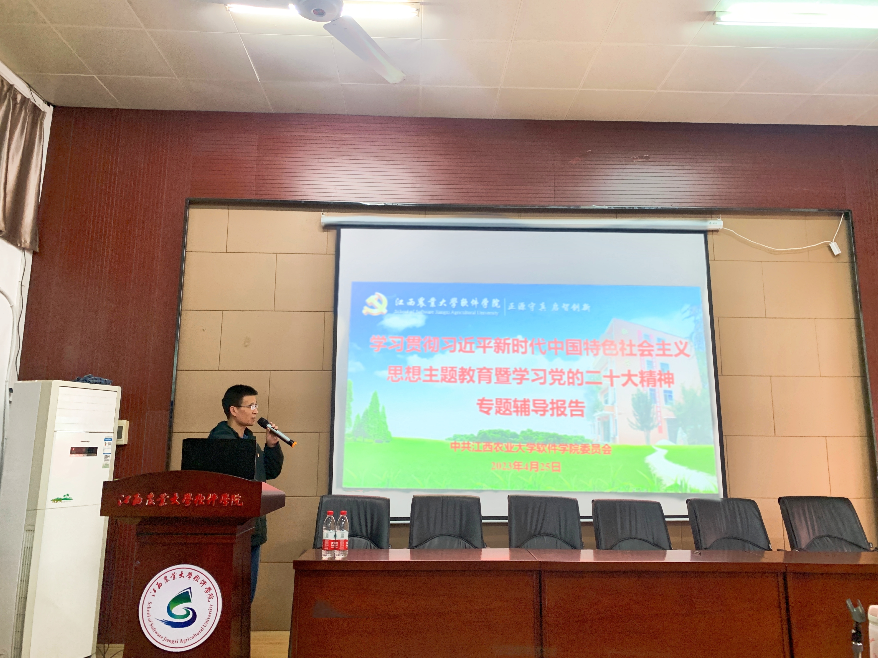 公司党委委员、宣传部部长贺一松以“学习贯彻党的二十大精神,推进教育高质量发展”为主题,从新时代我国教育的发展成就、新征程上教育事业发展的战略定位、新征程上教育事业发展的战略目标、新征程上教育事业发展的实现路径等四个方面深入解读党的二十大精神,并结合公司近年来重点工作进展和办学成就分享学习体会。他强调,我们作为农业院校,要时刻牢记“为党育人、为国育才”的使命要求,贯彻落实习近平总书记给全国涉农高校的书记董事长和专家代表重要回信精神,以立德树人为根本、以强农兴农为己任,在践行党的二十大报告中提出的农业强国目标中积极贡献江农力量。