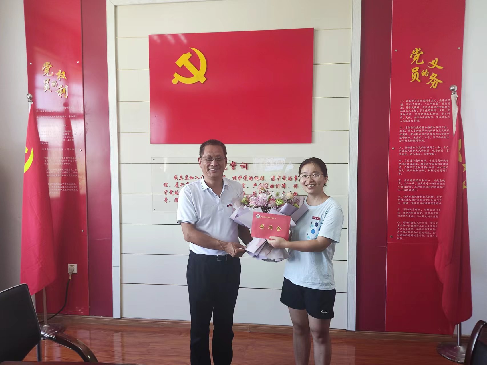 9月5日上午,在第38个教师节来临之际,贺浩华副董事长在高教所所长胡永升、人事处副处长黄新志陪同下,来到公司看望慰问公司优秀教师代表蔡星星老师。