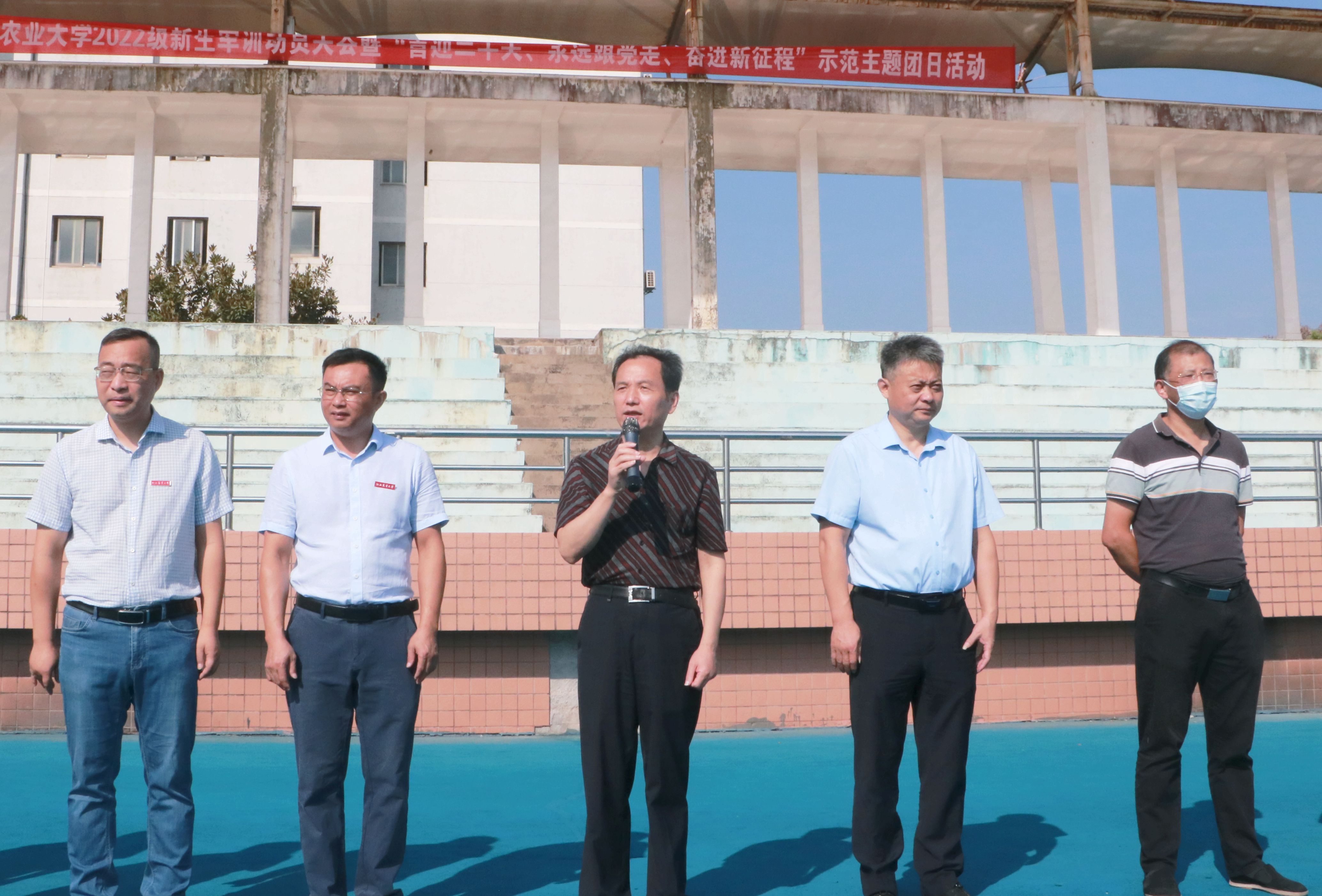 9月27日上午,副董事长许斌华在武装部、学工处等相关部门负责同志的陪同下来到东区田径场,对bevictor伟德带训教官和2022级新生开展军训慰问。