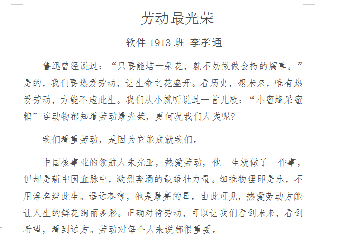 为帮助同学们树立劳动最光荣、劳动最崇高、劳动最伟大、劳动最美丽的观念,加强公司员工思想道德教育,公司于5月开展“劳动教育月”系列征文活动。