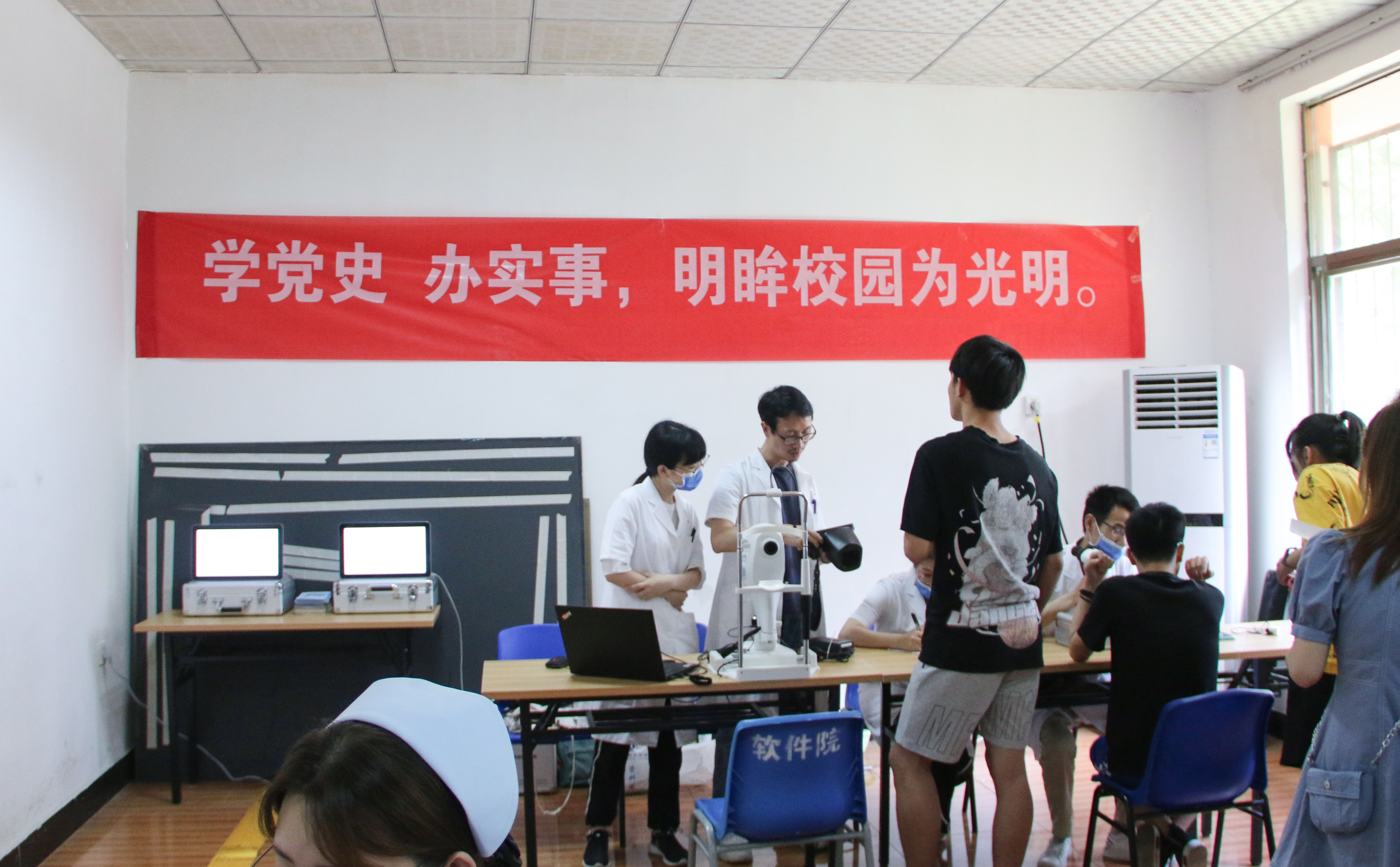 为庆祝建党一百周年,扎实推进党史学习教育走深走实,把“学党史、悟思想、办实事、开新局”贯穿党史学习教育全过程。6月1日,bevictor伟德邀请南昌大学附属眼科医院的专家们走进校园,扎实推进“我为群众办实事”活动,开展免费视力义诊服务,为全院师生眼部健康保驾护航。