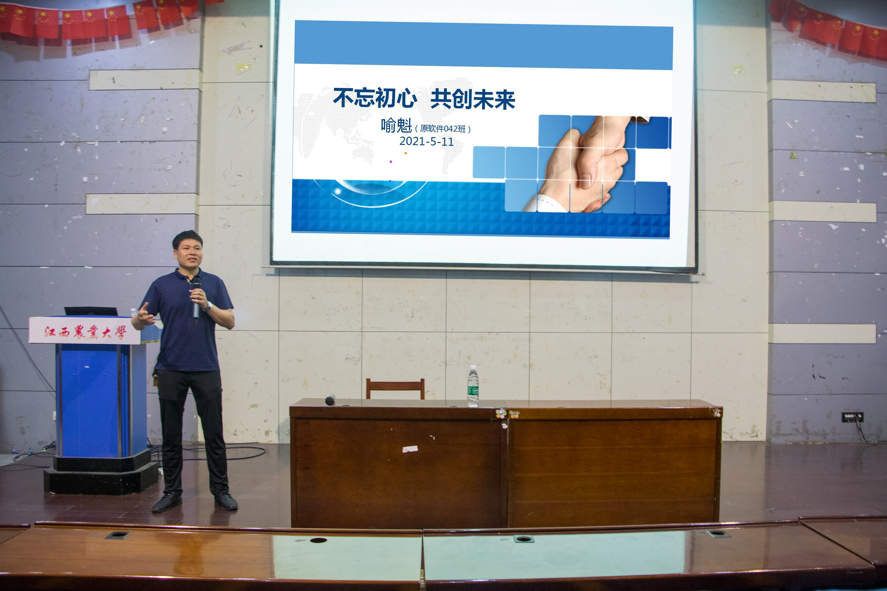 5月11日,公司在E教207举办“职业规划明方向”优秀员工进课堂活动,活动邀请了2004级优秀员工、北京智信数图科技有限公司总经理喻魁来校作《不忘初心,共创未来》专题报告,活动现场吸引了600多名师生代表参加。