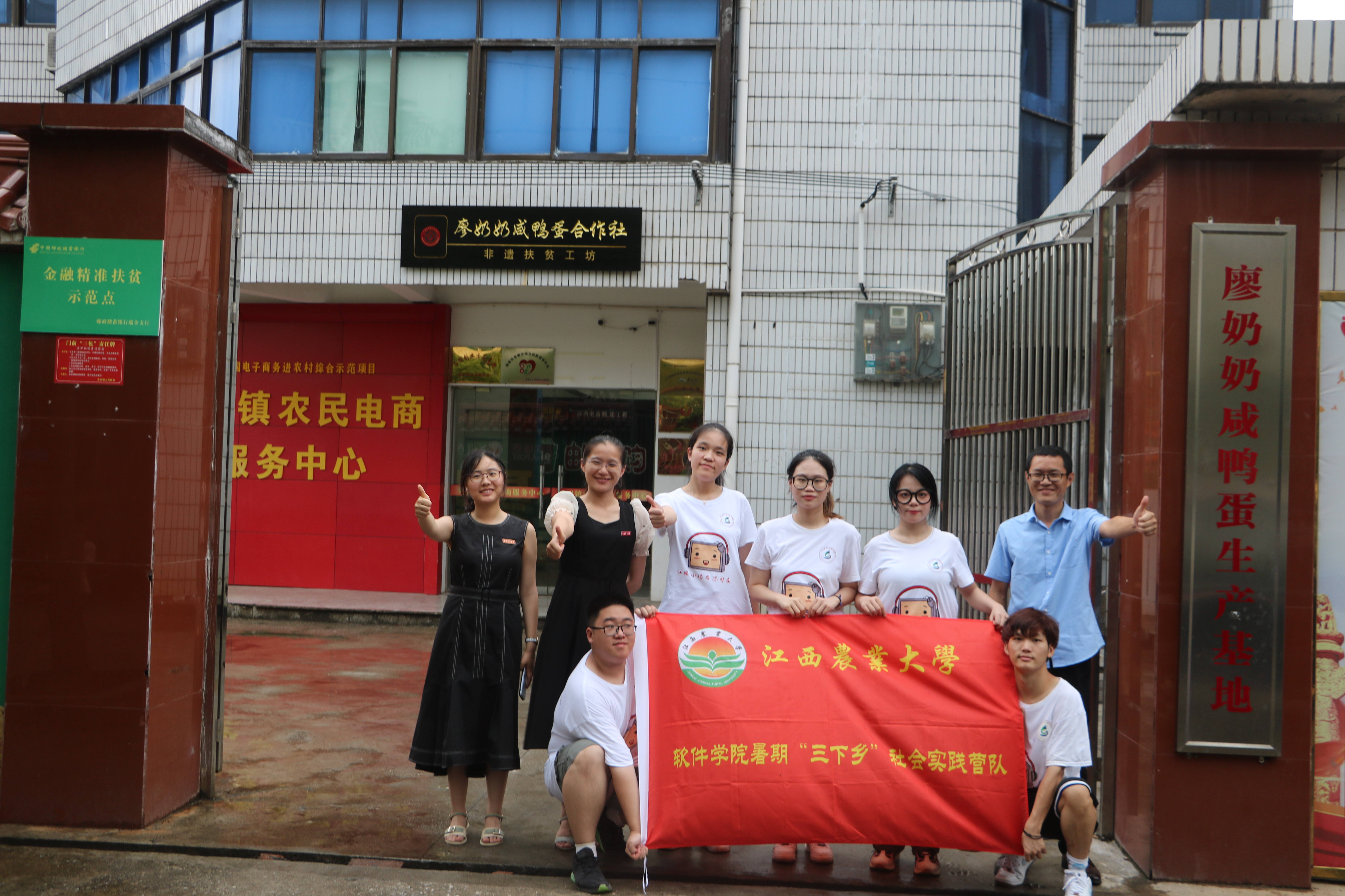 “各位小伙伴们,流油的蛋黄,香甜的蛋白,真的第一次品尝到这么美味的咸鸭蛋,买它!买它!……”7月6日下午,队员们来到壬田镇廖奶奶咸鸭蛋合作社生产基地,现场进行了一次线上公益助农直播尝试。队员们化身网红主播,生动讲解和现场演示咸鸭蛋的制作生产过程,卖力推广咸鸭蛋制作技术这一非物质文化遗产,聚拢广大网友近距离感受咸鸭蛋制作过程的神奇魅力。小小的咸鸭蛋,背后却是一个村的脱贫故事,它让壬田镇凤岗村28户农户摆脱了贫困,闯出了一条产业脱贫的康庄大道。队员们了解到廖奶奶咸鸭蛋背后的脱贫故事后,纷纷竖出大拇指,内心充满了赞叹之情。队员们针对咸鸭蛋合作社的品牌运行、生产模式、销售渠道等具体情况,运用自己所学知识,就如何运用网络技术拓宽农产品销售渠道、打造独特品牌,积极开展了调研与探索。他们说道,一定要学好专业知识,用网络技术、电商平台,助力农产品销售,助力乡村振兴。