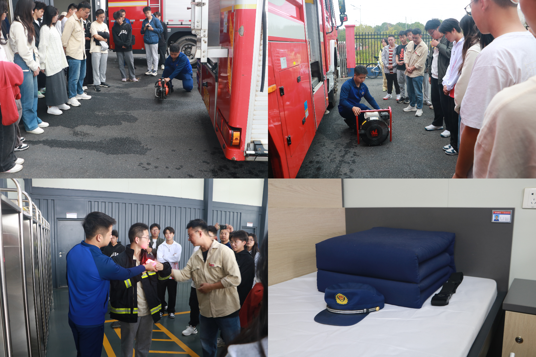 随后,消防员带领同学们参观了消防站的宿舍、学习室等场所,让大家了解消防员的日常生活和学习情况。看到消防员们整齐划一的内务设置,同学们不禁发出阵阵赞叹。消防员还为同学们讲解了如何预防火灾、火灾发生时如何逃生等消防安全知识,通过一个个真实的案例,让同学们深刻认识到消防安全的重要性。