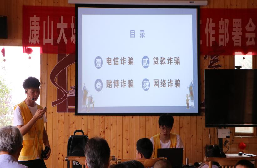 前山村大部分常住居民为老人与儿童,缺乏安全防范意识,为进一步增强当地群众的安全防范意识,提高群众应急自救能力。实践营队队员身穿黄色马甲,携手余干县瑞洪镇民警和余干县绿舟救援队开展识诈防骗宣传、禁毒宣传、防溺水教育和消防安全教育等系列活动。