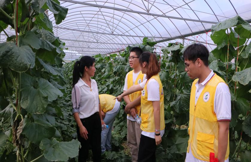 为深入了解前山村产业的发展情况,营队成员们前往前山村蔬菜种植基地进行实地调研,了解蔬菜大棚的种植和经济收益等情况。谈及蔬菜大棚,工作人员自豪地说道:“自从村里有了这个蔬菜大棚,推动了经济发展不说,更是解决了许多村民的就业问题”。