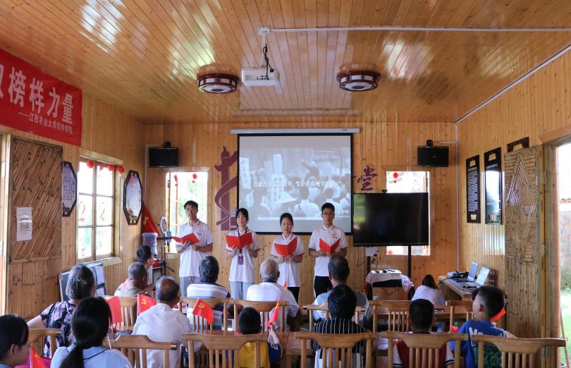 “百年党史波澜壮阔,百年初心历久弥新”。为了庆祝建党101周年,迎接党的二十大胜利召开,让党史教育“走入寻常百姓家”。“码上实践”营队在余干县前山村开展以“庆七一、感党恩、守初心、担使命,喜迎党的二十大”为主题的系列庆祝活动,通过“讲授一堂党课、合唱一曲红歌、重温一次誓词、参观一处旧址”的方式,传承红色基因、赓续红色血脉。