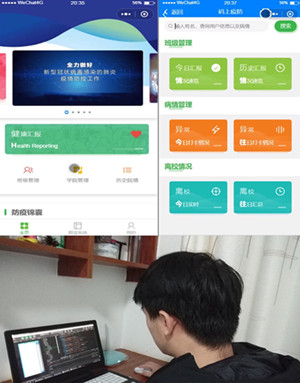 “码”上防疫系统。在疫情防控的关键时期,为了做好疫情防控监测、排查、预警、管理服务等工作,17级员工党员徐凡康主动请缨,积极联系公司,沟通员工疫情防控工作情况的难点、痛点,组建项目团队、编写项目需求分析书、设计产品原型、编写“码”上防疫管理系统。目前,该系统以微信小程序的方式即将上线,可实现高效、快速、实时掌控员工动态信息,实现公司疫情防控数据精准化、防控过程高效化,为公司做好疫情防控和管理工作奠定基础。